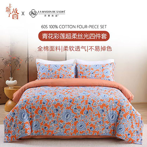 上新了故宫联名60s青花彩莲超柔丝光四件套