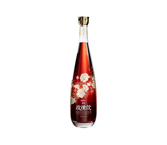 优雅红酒瓶身,墨红玫瑰浮雕透光生辉;适配餐桌调味、宴会调酒、冰饮佐餐,瓶启芳醇,以花醋代酒,升华餐饮仪式感。